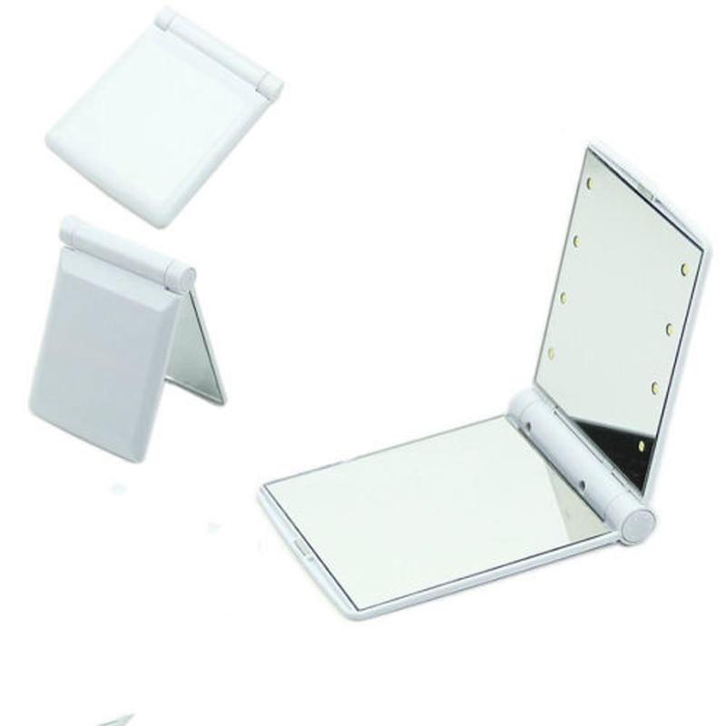 Item Type: Makeup MirrorModel Number: Makeup ToolsMaterial: ABS plasticsSize: 11cmx8.5cmx1cmLight: EquippedColor: Black,White,Pink,Blue,Purple